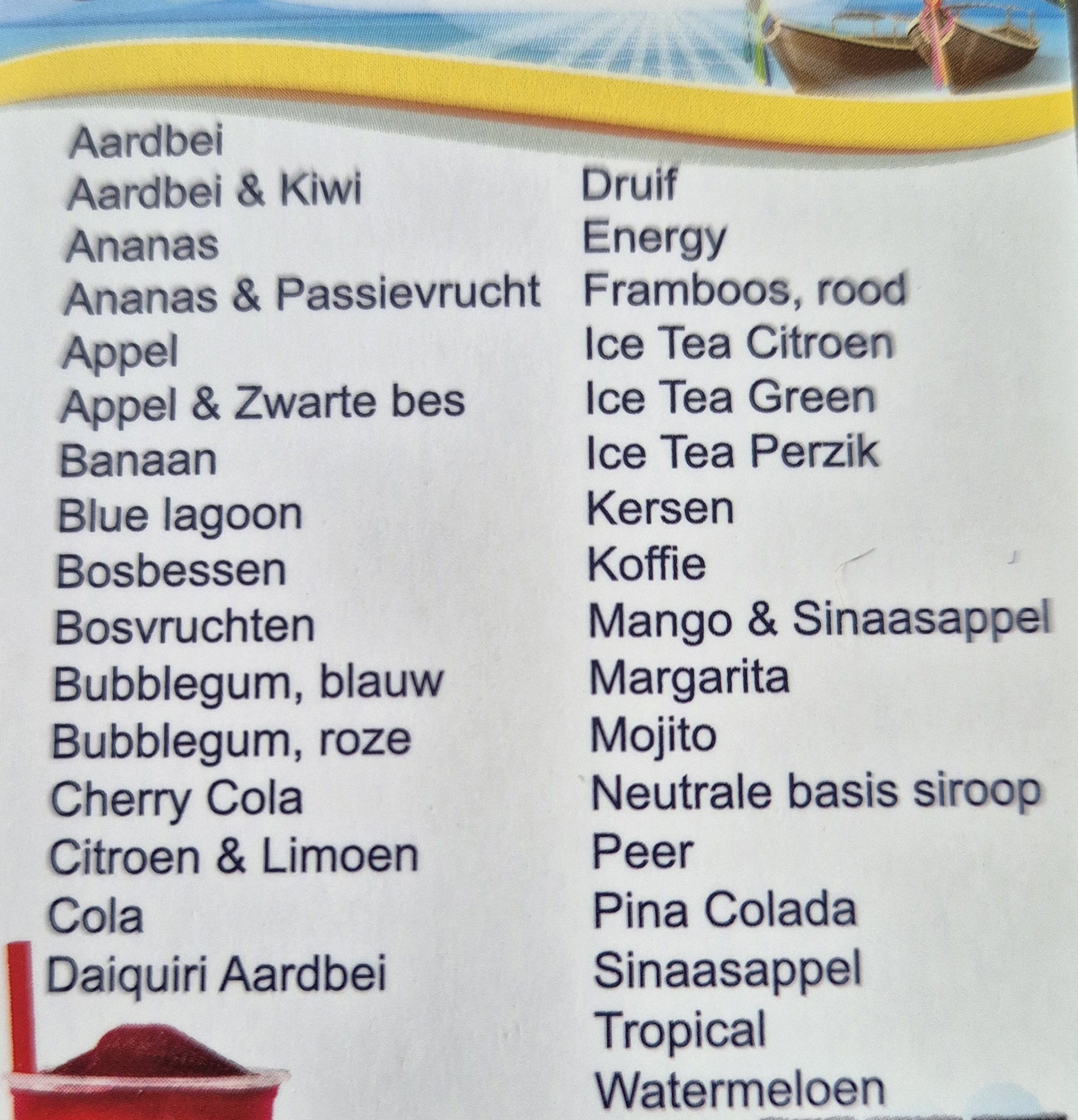 Overige kleuren/smaken 14 dagen van te voren bestellen.